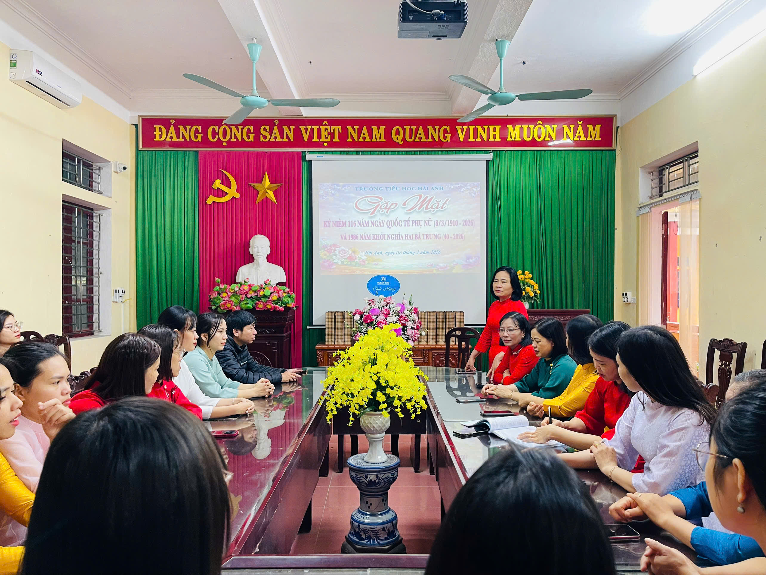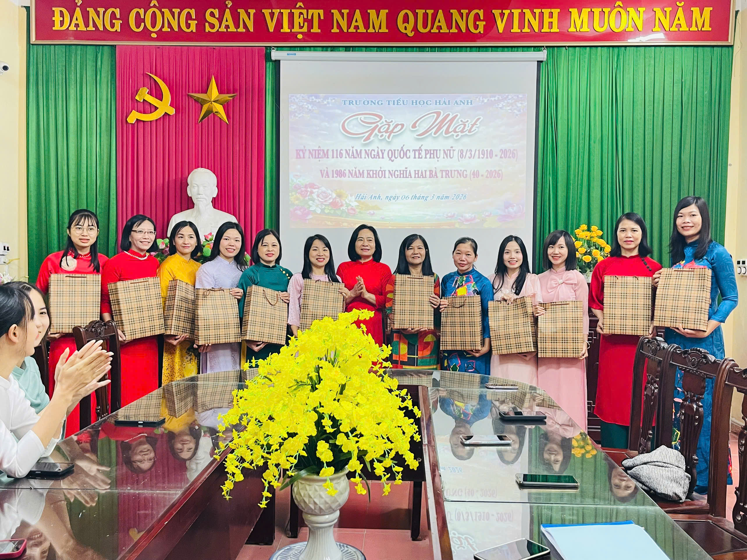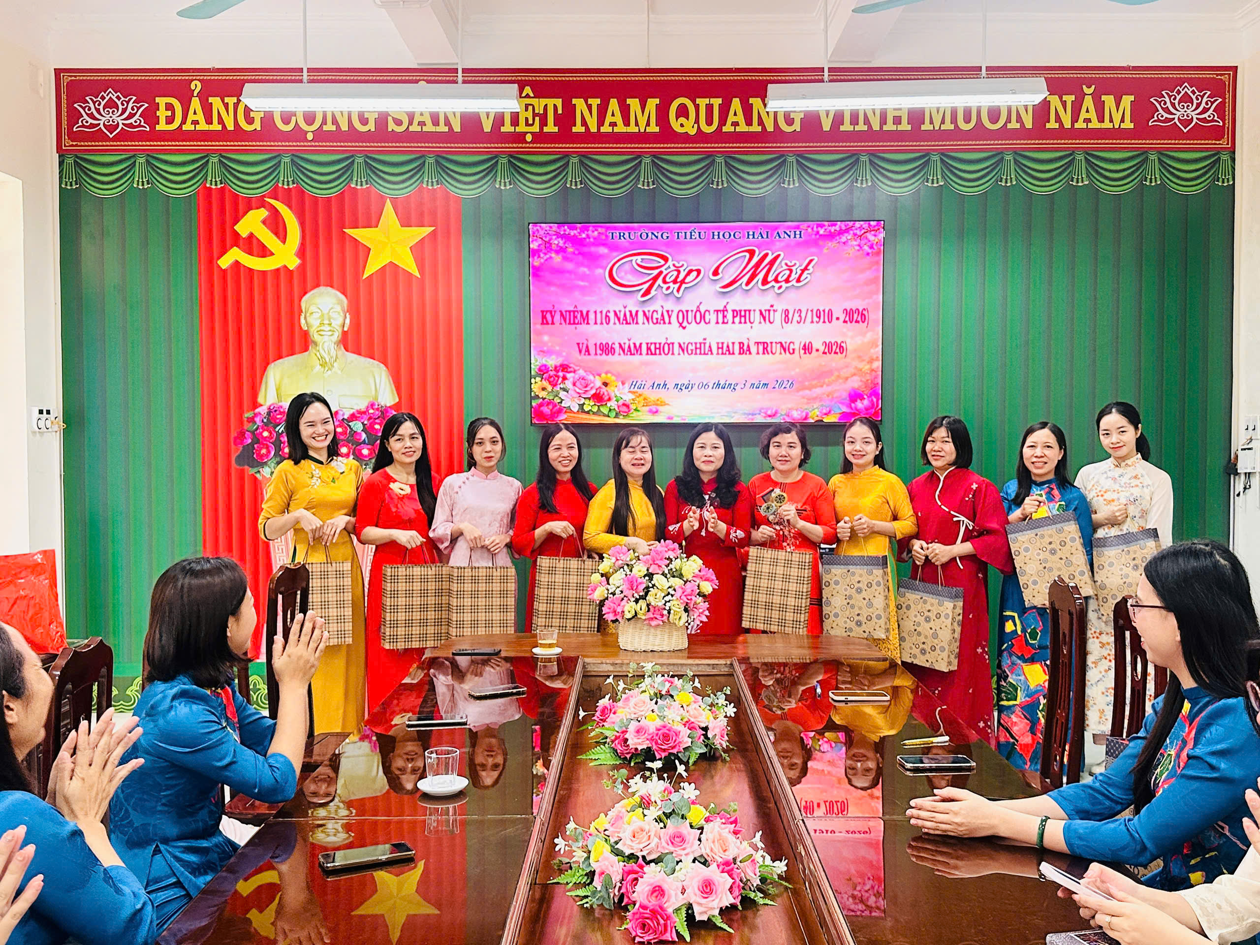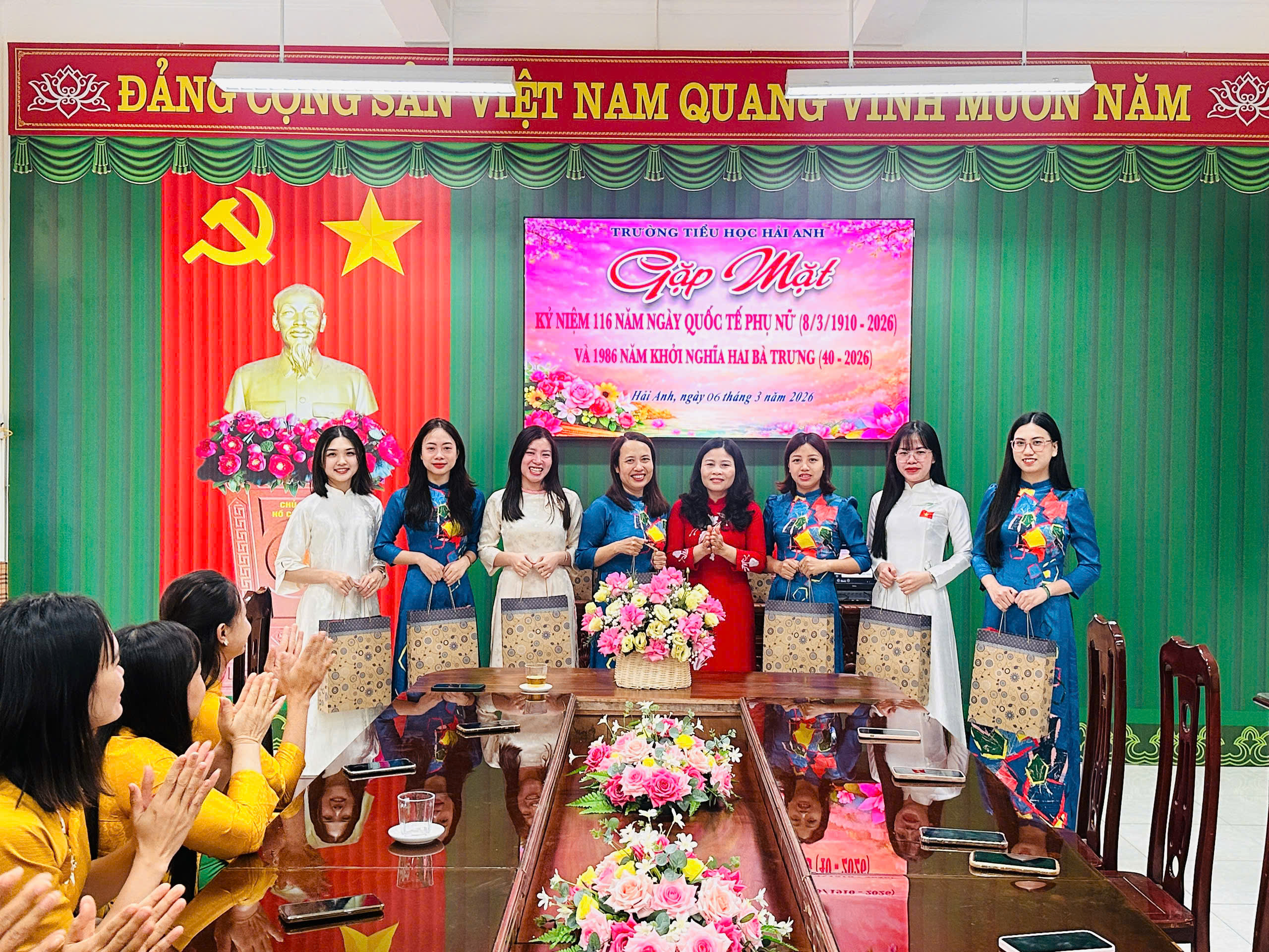 Trong tà áo dài truyền thống duyên dáng, các cô giáo Trường Tiểu học Hải Anh đã góp phần tôn vinh vẻ đẹp của người phụ nữ Việt Nam – dịu dàng, thanh lịch, tận tâm với sự nghiệp trồng người. Không khí buổi gặp mặt diễn ra ấm áp, vui tươi, thể hiện sự quan tâm và trân trọng của nhà trường đối với những đóng góp của đội ngũ nữ cán bộ, giáo viên, nhân viên.