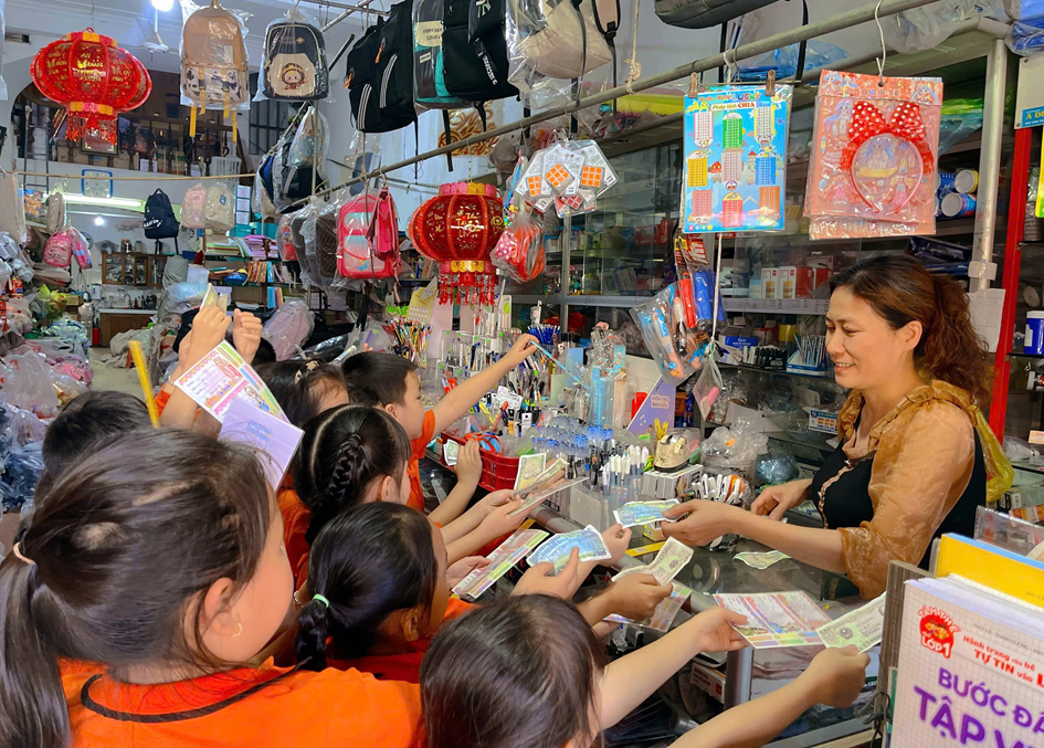 HS lễ phép với cô bán hàngEm Phạm Hải Yến, học sinh lớp 2A7, hào hứng chia sẻ: “Em rất vui khi được đi siêu thị và nhà sách cùng các bạn. Qua hoạt động, em đã biết xem hạn sử dụng khi mua sữa và nhớ phải chờ đèn xanh mới được sang đường. Em cảm thấy mình trưởng thành hơn và có ý thức trách nhiệm với bản thân cũng như cộng đồng xung quanh”.